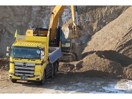 \土木事業部の紹介/土木建築関連工事における、土砂・骨材の運搬を主に担っています。 公共工事・民間工事・宅地造成工事・道路工事・河川工事・遊水池工事など多岐に渡り対応。街づくり・インフラづくりに関わるダンプ運搬業務の他、冬期は排雪も行っている部署です。